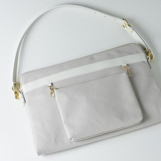 ■ ピンクベージュ(ショルダー部分:ホワイト、外付けポーチ:ピンクベージュ)